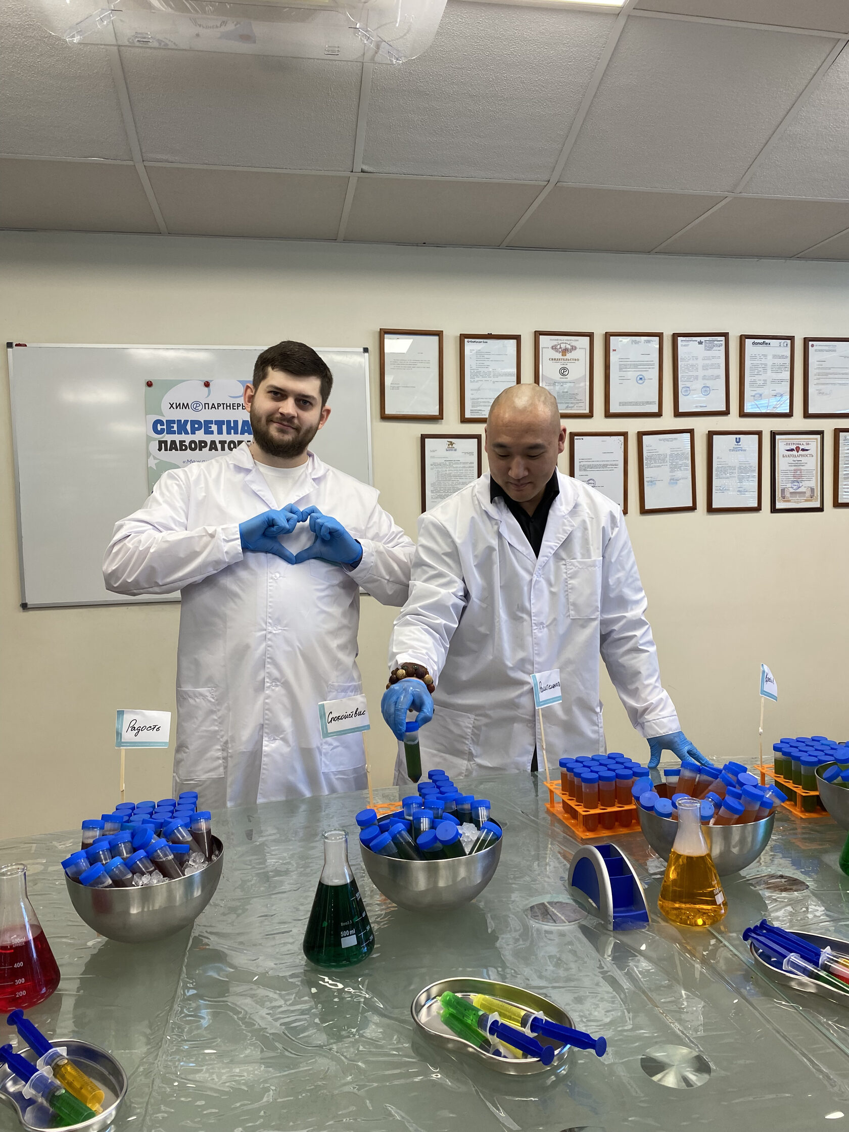 Бармены в халатах и перчатках, колбы, пробирки, кипение, пар, сухой лёд, таблица Менделеева на стене — всё как положено в химии и чуть-чуть в безумии. Вошёл — и как будто попал в лабораторию гениального профессора, только вместо опасных реакций — веселье в пробирке.